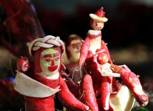 <br> <br> 时间:2009年12月23日<br> <br> 地点:墨西哥,瓦哈卡<br> <br> 在节日前三天,雕刻者们挑选出一个萝卜,独自构思,精心雕刻成动物、舞蹈家、征服者等形象,比赛当天再将自己的得意之作展现给观众,获胜者可以获得丰富的奖金。 <br> <br>