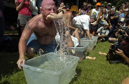 <br> <br> 时间:2009年7月4日<br> <br> 地点:芬兰<br> <br> 17世纪发起的背妻大赛目的是背着妻子赢得接力赛,赢家可以获得和妻子体重相等的啤酒。现在世界上其他地区也有相似的活动。<br> <br>