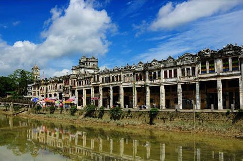 南楼高五层,外面布满弹孔。司徒氏七烈士于1945年日本投降前25日凭此楼抗击日军,坚守7天7夜的英雄事迹,深受后人敬仰,南楼也因而成为侨乡人民坚贞不屈、为国捐躯的不朽历史见证,现为开平民族爱国主义教育基地。