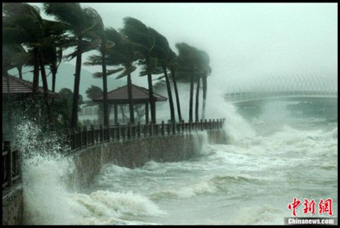 9月29日14时:强台风“纳沙”中心位于海南省文昌近海10公里,即北纬19.7度,东经111.1度,中心附近最大风力14级(42米/秒),中心气压960百帕。