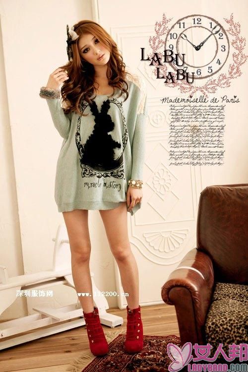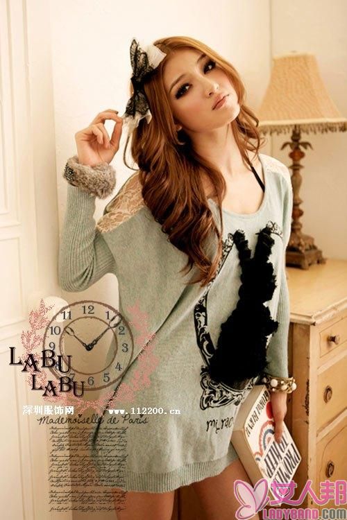 2011秋装毛衣我最美丽 童话魔镜蕾丝兔子长版毛衣