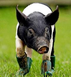 <br> <br> 英国约克郡一头名叫“灰姑娘”的小猪可能是世界上第一头患有洁癖症的小猪,自出生后,它一直不肯和兄弟姐妹一起在泥巴中玩耍。直到近日主人为它定做了4只小靴子,它才终于肯和泥巴亲近。 <br> <br> “灰姑娘”自出生后一直拒绝在泥巴中玩耍,后经兽医诊断,这头小猪患有“不洁恐怖”的疾病——一种害怕泥土的恐惧症。这也是迄今为止人类发现的第一头害怕泥巴的猪。<br> <br>