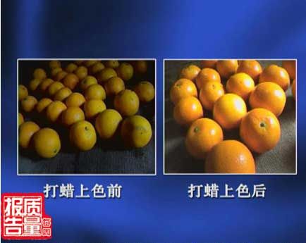 据老板介绍这么做是为了给橙子打蜡上色。这种红色的粉末是一种色素,而这种油状物则是石蜡