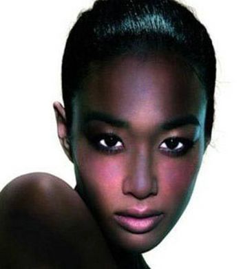 全黑色的皮肤,用粉红色装点脸部的几个突出点:额头、两颊颧骨和嘴唇,在一片炭黑色中,眼白的白色显得异常夺目,有人说这像传说中的夜叉,有人说像烧死鬼,总之,夸张的视觉效果是达到了。