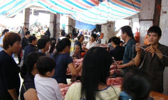 现在流动卖猪肉的很多,骑个三轮车,后排放个木板就卖..