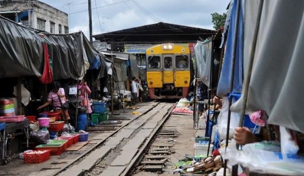 来瞧瞧泰国每天被火车压过N次的菜市场