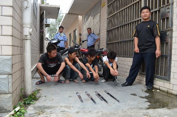 就在这时,6名疑犯发现民警驾车逼近后,纷纷拿出砍刀,边持刀边逃走。这时三个伏击组的民警围了上来,6名疑犯见势不妙,走入了民乐西村。民警们兵分几路,封锁住村的主要路口,进入村里追捕,同时要求村长迅速组织群众,共同在村内搜捕这6名抢劫疑犯。结果组成200多人的警民队伍,将几名疑犯合围抓捕。