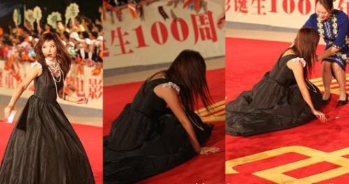 女明星当众意外摔倒是什么表情?