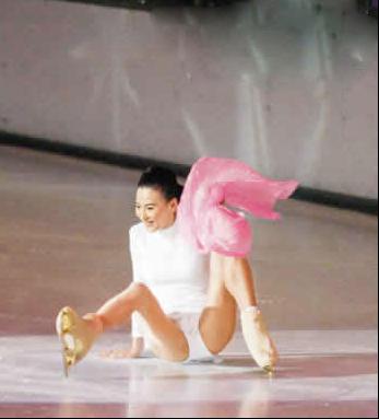 <br> <br> 张柏芝滑冰摔倒。<br> <br>