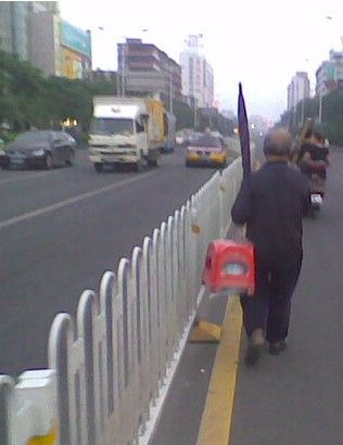 他说,“车辆看到我们这些人都会让路的。放心吧,我已经习惯了!”此时,看到行驶车辆的中间铁栏处老人家从容地走着。看到他那陌生的背影,走着熟练的步子,此时心中打翻了五味瓶。
