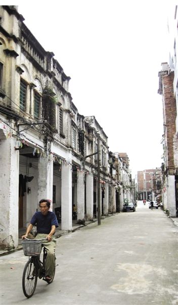 藤蔓在骑楼的砖缝、镂空的窗中爬过去,漆黑的楼里传出一股难闻的霉味,门前的“危房勿近”标示低诉着骑楼昔日的辉煌。看到“小别墅”逐渐占领骑楼街,陈婆婆不禁一阵心酸,“骑楼是历史,一座没有保留历史和文化的城镇,让人没有归属感。”