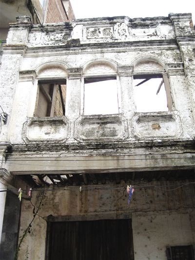 南大路上的一幢骑楼只剩下了躯壳,好像澳门大三巴牌坊。