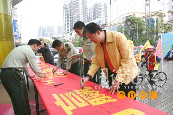 千人签名 清剿火患人人有责 在签名区,团市委和市公安消防局等领导带头在印有“清剿火患 人人有责”的条幅上签名,千余名群众也积极参与,纷纷在条幅上签名。