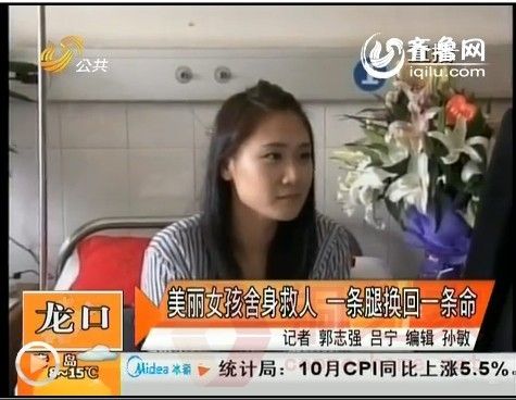 烟台龙口女孩刁娜路遇被撞伤者,为了不让小悦悦悲剧重演,她立即与丈夫一起下车施救,营救过程中不幸被过往汽车撞断腿。对此,刁娜说,“一条腿换一条命,值得了”。这样一个24岁的柔弱女子,用自己的生命,为另一个女子撑起了生命通道,在网上,她被誉为“龙口最美女孩”。