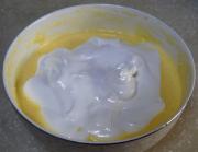 打发淡奶油(出现纹路即可),将打发的淡奶油加入到第四步中拌匀</li> <li>6