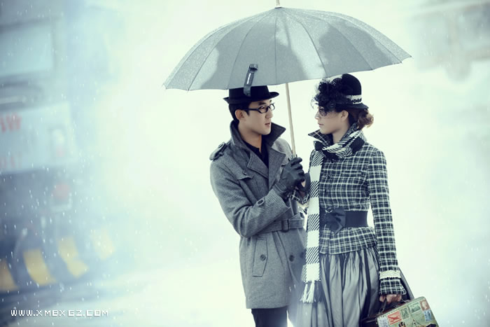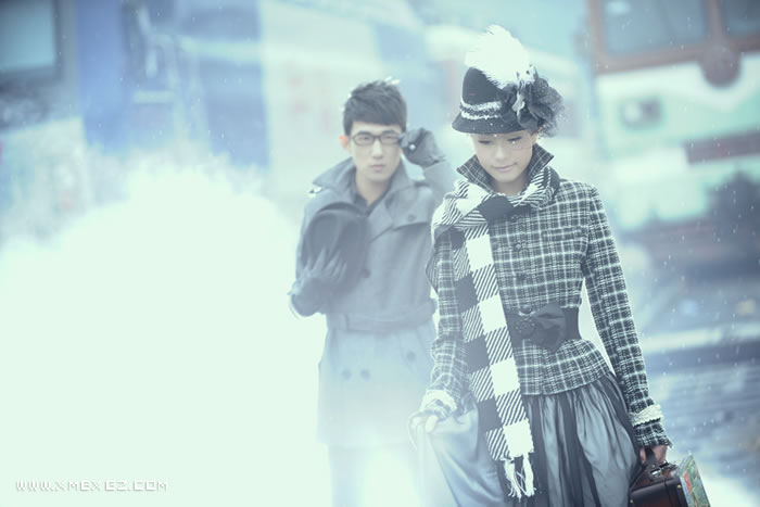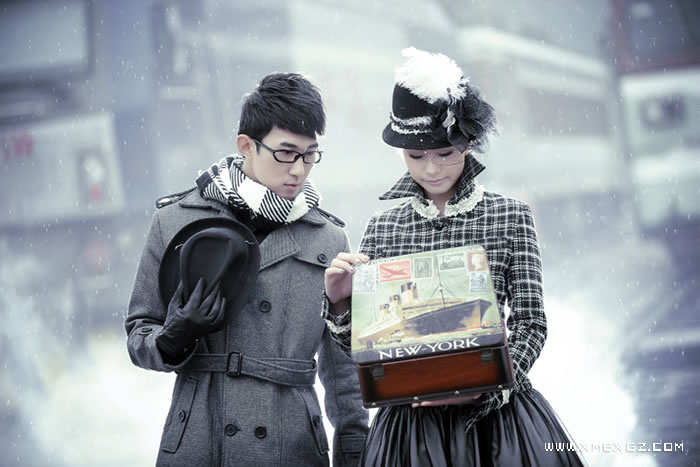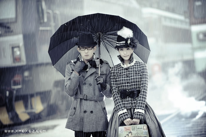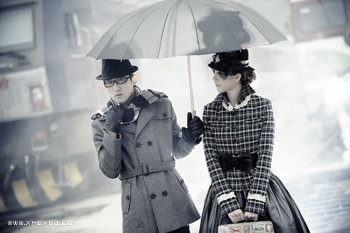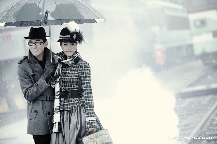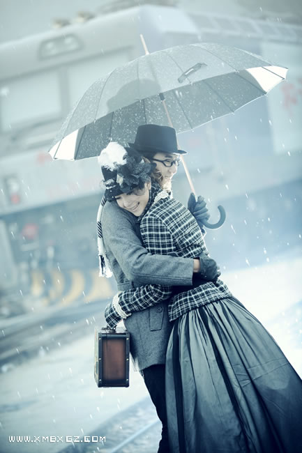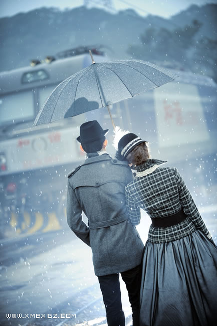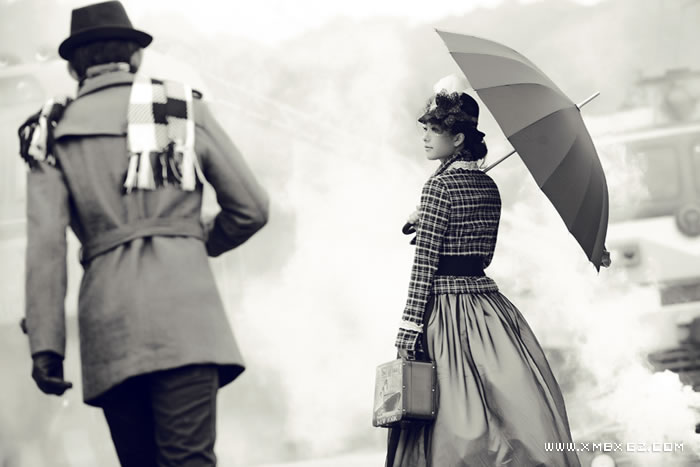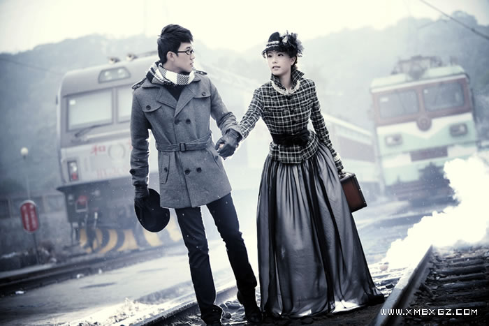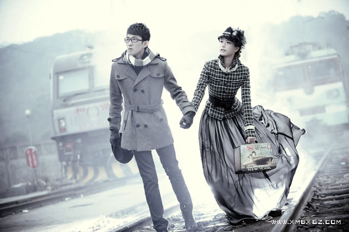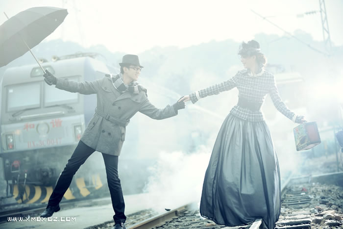 于火车站拍摄的【英伦恋人】婚纱摄影作品