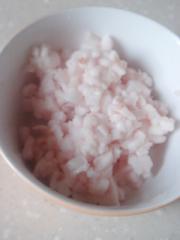 <br/>肥肉切成石榴粒,就是石榴籽那么大的颗粒,一定不要剁成肉馅,否则你肯定做不出好吃的狮子头。</li><li>3