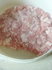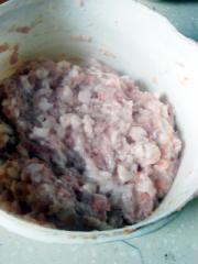 <br/>将猪肉馅中,先加入1.5瓷勺料酒,1茶匙白糖,2茶匙盐,搅拌均匀。 然后分次加入淀粉水,搅拌上劲(一定要用手搅拌...),如果你觉得搅拌的劲不够,说明盐不够,可以再加少许,继续搅拌。注意:一定要一边搅拌,一边摔打肉馅。最后出现肉茸就是搅打好了。</li></ul><ul><li>7
