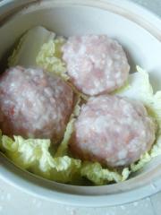 <br/>最好用砂锅,因此我做6只,用了两个砂锅。将砂锅底部铺上洗干净的白菜叶。取肉馅,做成手掌大小的扁圆形丸子。拍丸子的时候要双手沾好水,一定要左右手不断地交替摔打,直到丸子外表均匀。</li><li>8