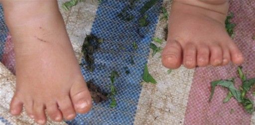 徐闻县锦和镇红星管区石盘水电站的宿舍中,看到了这个多手指脚趾的小男孩。刚刚学会走路的小男孩小赖,左右手各有着六根手指,散开长着,左右两脚也各有六根脚趾,长得十分均匀。 据小男孩的母亲黄夫人的介绍,小赖一出生时就出现24根手指脚趾的,该小男孩的父母、祖父祖母、以外其外公外婆几代人都没有这样的多手指脚趾的情况。