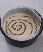 倒入奶酪糊。然后把可可色的奶酪糊装入裱花袋中,挤在上面。</li><li>14