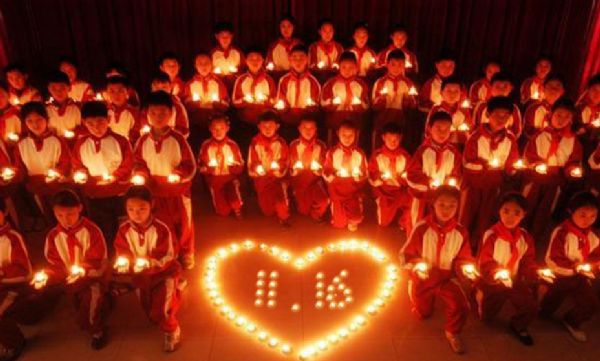 一只蜡烛,一束菊花,一句祝福……17日晚,兰州网友自发前往兰州东方红广场,为甘肃庆阳正宁县校车事故遇难的21名幼儿祈福。图为17日晚,兰州网友自发为甘肃正宁县遇难幼儿举行祈福活动。