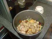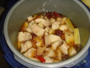 <br/>把油烧热放入五花肉和干海椒道翻炒,直至颜色变黄,油也煸出不少,出锅。将肉放入电高压锅,加水漫过肉块,加酱油少许、盐、大料四、五枚,大葱段少许,花椒少许,土豆块若干。</li><li>2