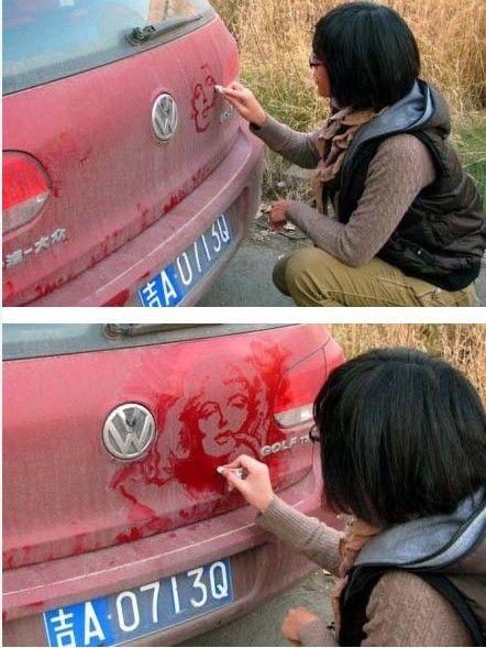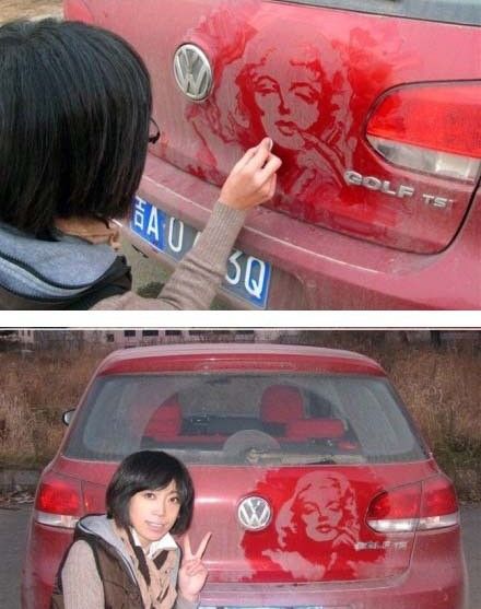 神一样的纸巾姐,这位用纸巾在车上画梦露的姐要红!
