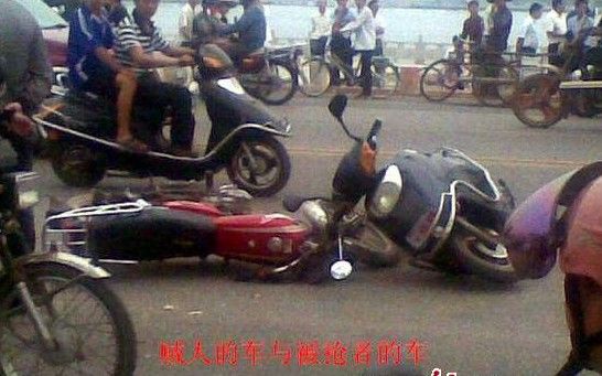 原来是几个毛贼抢一送小孩上学的妇女的金链,撞倒了妇女,贼车也倒了。贼被追,分散逃走,其中一贼被该妇女紧紧缠着,挣扎之时,曾有人听到放炮声,据说是贼人掏出枪对被抢妇人开枪。群众当初听到妇人喊,有人抢东西,未曾反应过来。此刻看到此举,纷纷过来追贼。终于在西湖的土地庙附近,拦住贼人,群众群情激起,痛殴贼人,最后在警察到来时,将贼人押往警车。因此,许多路人驻足观看,余兴未尽地谈论着。