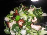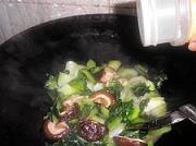 <br/>油锅烧热后,放入青菜和香菇,煸炒几下。</li><li>5