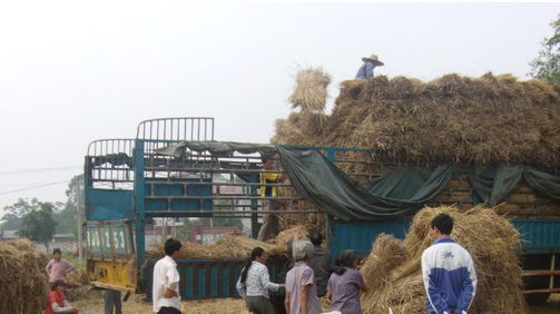 一捆稻草能卖1元钱,而且收购商还抢着要,。21日,纪家镇官长村,果然见到许多运输车正在紧张地装载稻草。有的收购,有的装车,忙得不亦乐乎。