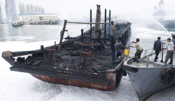 “着火的是木制柴油渔船,木板用桐油刷过,加之船上有油,一旦起火极难扑灭。”一名政府官员在电话里向记者解释为何1个多小时还未能灭火。