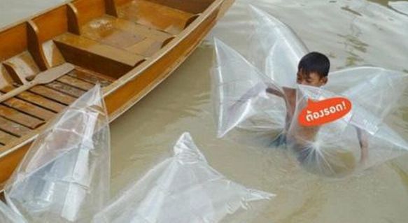 有创意啊! 水灾中泰国人民的乐观与智慧