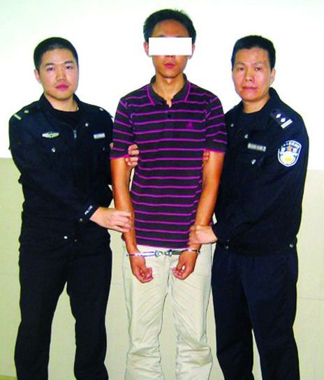 11月21日,东莞理工学院大二女生梁荣彩大白天在教学楼厕所被害,命案不但发生在上午上课期间,而且发生在离教室几步之遥的女厕所内。昨日凌晨东莞警方公布,该案告破,凶手出逃三天后在广州向警方投案自首。凶手是该学院一名大四男生,与死者并不相识。他向警方供认自己尾随梁荣彩进入女厕,意图实施强奸,遭到梁荣彩反抗,因害怕事情暴露遂将梁荣彩杀人。图为该男生投案后被捕。