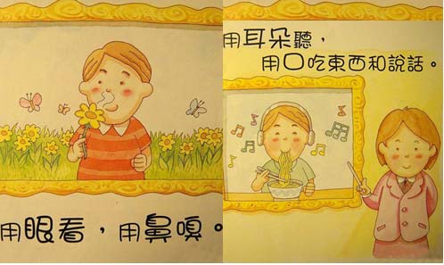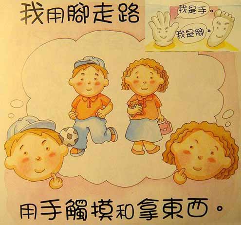 父母最好陪着孩子一起看,在旁加以解释及辅导,叫孩子一边看,一边朗读身体各部分的名称,以加深印象。更可在阅读后,用简单问答来测试孩子的认识和了解。