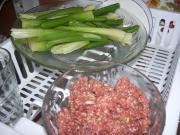 羊肉馅内放入调料、搅拌均匀、有盐少许、一个鸡蛋、红酒一点、姜末、然后再切点芹菜末放里面、芹菜已经洗干净用热水烫过了、不放水、放水就太稀了。放一勺植物油。</li> <li>3