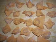 把面擀成薄片、切成梯形馄饨皮、然后包制、包好以后也可以放入冰箱冷冻、吃的时候就可以煮了。</li> </ul> <ul><li>4