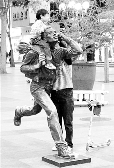 不懂事的孩子再不乖也不会自己爬上高高的雕塑,只有同样“不懂事”的家长才能办得到。雕塑代表的城市形象应该从某个方面深入人心,把人的公德心也“雕塑”一下。
