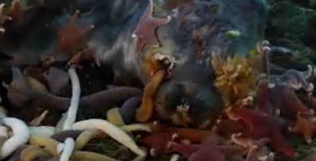 南极巨虫 南极巨虫视频 南极巨虫图片 据说南极巨虫视频是在南极麦克默多海峡冰冷的海水里由潜水员为自然历史节目拍摄的。据说南极巨虫视频中出现的,这么多食物也许十年才能遇到一次。因此可以看到非常众多的南极巨虫、海星和海胆疯狂抢食一只死海豹尸体的镜头。