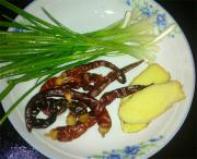 <br/>香葱洗净切段,姜切末,辣椒切碎。</li><li>3