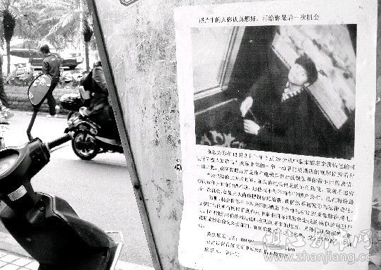 在湛江市区街头,不少地方出现了一位最近钱包被偷的市民所张贴的“警告”,要小偷归还钱包。