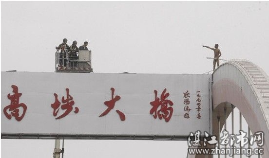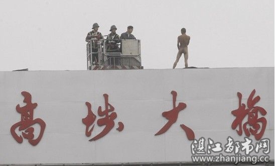 昨日上午9点左右,一名疑患有精神病的男子全身赤裸地爬上高埗大桥桥顶,并不时在离地面二三十米高的桥顶来回走动玩耍,更声称自己是“孙悟空”。一个半小时之后,消防队员利用裸男的心理,巧妙引用西游记中唐僧收徒的情节,将裸男劝下。