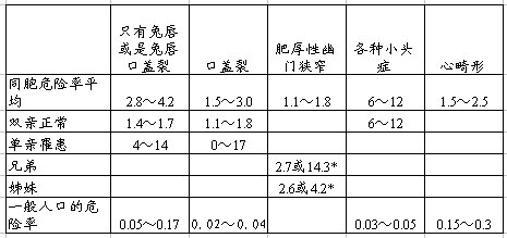 <br><br><br><br>*第一位发病的患儿为女子之时<br><br><br>③预防与治疗:应尽量避免容易发生畸形的原因,尤其是近亲结婚及高龄生产。<br><br>妊娠初期尤需注意,不可接受放射线照射、不乱服药物、尽量少去公共场所、不接触风疹患者,而且在整个妊娠期间,应注意身体健康。<br><br>如发现畸形应尽早接受医生治疗。兔唇、口盖裂、指趾畸形、心脏畸形,可在适当时间进行手术。<br><br>(2)先天代谢异常<br><br>①原因与症状:人类的生命现象,进行着不停地活动代谢,如果与生俱有某些异常而产生障碍,称为先天代谢异常。<br><br>大多数的原因在于遗传因子,很可能是妊娠中受到母体影响。<br><br>先天代谢异常种类很多,目前知道的已达200种以上,苯丙酮尿症是代表性疾病,可在早<br>期发现,不过疾病种类相当多,而且先天代谢异常没有共同症状。<br><br>大多数到了最后都会发生智能障碍。<br><br>②对策:必须早期发现、早期治疗。<br><br>出生后,检查微量血液。<br><br><br>本文由北京中山响沙图书发行中心授权摇篮网发表,未经许可,禁止转载<br>