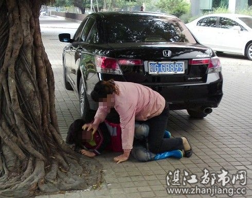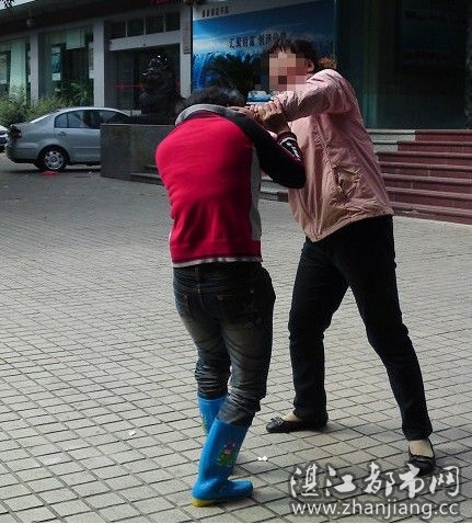 事因红衣女跟风衣女的老公有染,风衣女在街上遇见红衣女,就出手大打红衣女,还大喊:有人勾人家老公。好得保安出手相助,不然红衣女的头皮都被扯掉!