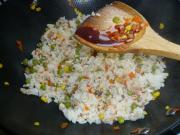 <br/>跟着放打散的大米饭,加少许生抽调色调味,翻炒匀后即可。</li></ul>