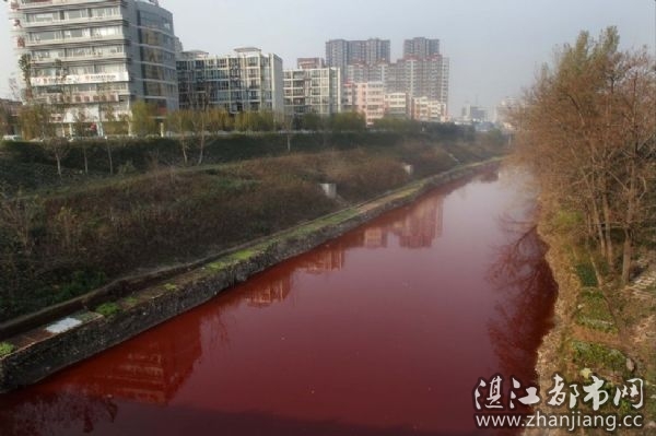 2011年12月13日,记者接到爆料称,洛阳涧河遭到污染,河水变成血红色,穿越市区后流入洛河。14日,洛阳市环保局经过排查,确认源头是两家非法作坊,生产污水直接排放进雨水管网,并流入涧河染红河水。14日,这两家非法作坊被取缔。图为记者在华山路涧河桥下采集河水水样。