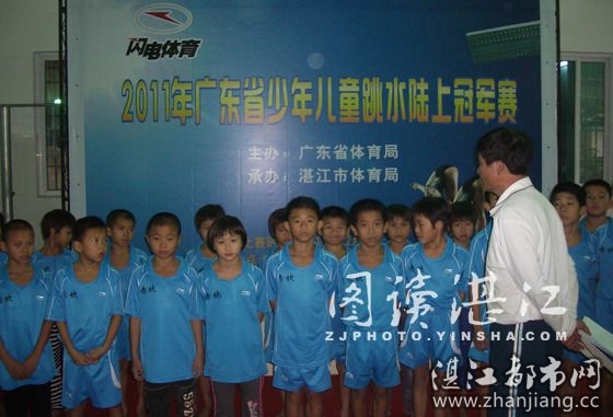 2011年广东省少年儿童跳水陆上冠军赛首次在湛江举行,参加本次比赛的有广州、深圳、汕头、惠州、东莞、中山、江门、茂名、湛江和湛江赤坎10支代表队共183名男、女运动员。
