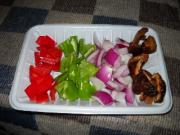 香菇切两半,洋葱、青红椒切块</li> </ul> <ul><li>4