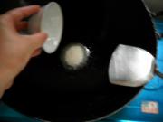 坐锅、点火、加油、烧热,倒入白糖,用中火翻炒</li> <li>5