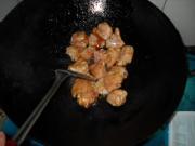 锅中白糖炒至要冒小泡时(拔丝前一刹那),倒入鸡翅中并快速翻炒均匀</li> <li>6